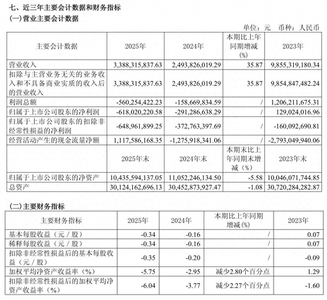3月20日,上实发展(600748)公布2025年年报,公司营业收入为33.88亿元,同比上升35.87%;归母净利润自上年同期亏损2.91亿元变为亏损6.18亿元,亏损额进一步扩大;扣非归母净利润自上年同期亏损3.73亿元变为亏损6.49亿元,亏损额进一步扩大;经营现金流净额为11.18亿元,同比增长187.6%;EPS(全面摊薄)为-0.34元。